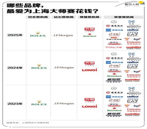 同樣引人注目的是上海大師賽。作為中國賽季另一場重頭戲,該賽事共吸引46家贊助商支持,在全部9站ATP1000大師賽中贊助商數(shù)量高居榜首。除了長期擔任冠名贊助商的勞力士,意圖強化本土客戶形象的摩根大通,光明乳業(yè)和喜力一同分享了第三級贊助商的位置。其中,光明乳業(yè)成為該賽事中贊助等級最高的本土品牌。