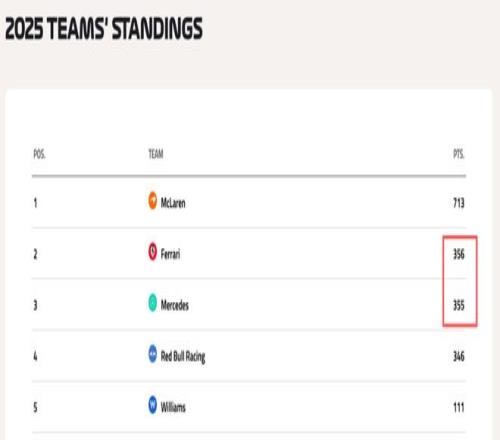 第六至第十名分別是:安東內(nèi)利、拉塞爾、漢密爾頓、奧康以及博托萊托。哈斯車隊(duì)在墨西哥站雙車拿分!而同樣雙車拿分的法拉利,因勒克萊爾(P2)和漢密爾頓(P8)的出色發(fā)揮,在年度車隊(duì)積分榜上反超梅奔1分來到第二!