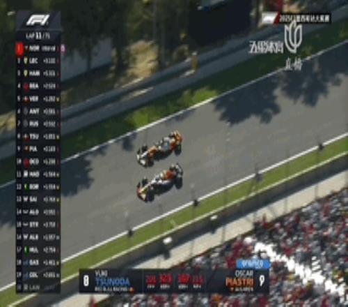 第11圈,皮亞斯特里終于攻破角田強(qiáng)硬的防守,在一號(hào)彎前的DRS對(duì)其完成超越升至第8名。
