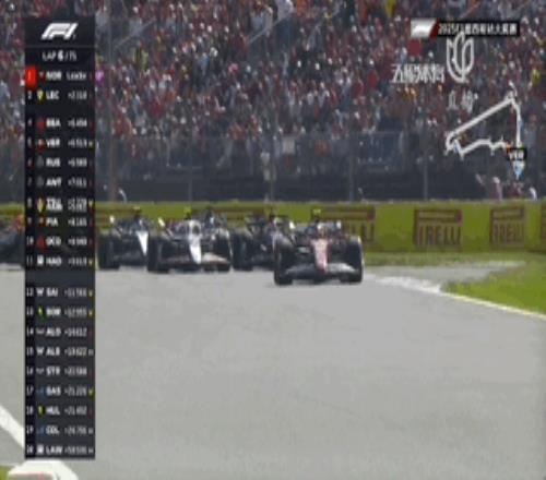 排位賽表現(xiàn)出色的諾里斯頭排發(fā)車,但他需要以一己之力對(duì)抗身后的兩輛法拉利。維斯塔潘和安東內(nèi)利在第三排發(fā)車,在他們身前的是近來表現(xiàn)穩(wěn)定的拉塞爾。