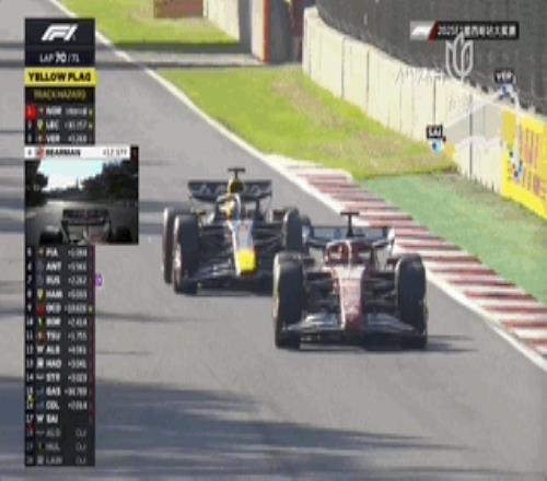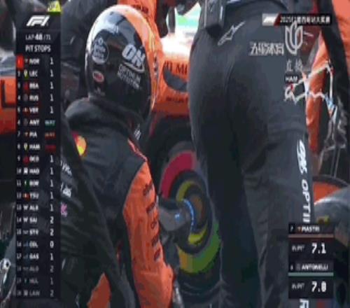 第48圈,安東內(nèi)利、皮亞斯特里和漢密爾頓同圈進(jìn)站,在維修區(qū)中,皮亞斯特里完成了對(duì)安東內(nèi)利的超越升至第7。隨后一圈,拉塞爾和比爾曼也選擇進(jìn)站!一停的比賽竟然變成了兩停?!