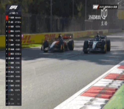 第60圈,皮亞斯特里再次追到拉塞爾身后!前者在一號(hào)彎的盡頭利用DRS完成超越!這次超越非常犀利且很有膽識(shí)!
