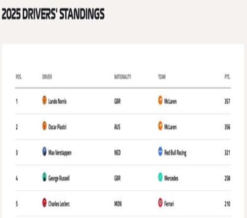 北京時(shí)間10月27日凌晨,2025賽季F1墨西哥站結(jié)束了正賽爭(zhēng)奪!最終,諾里斯強(qiáng)勢(shì)實(shí)現(xiàn)Pole to Win,由于他的隊(duì)友皮亞斯特里最終以第五完賽,諾里斯拿到25分的同時(shí)超越隊(duì)友1分暫時(shí)升至車手積分榜第一!